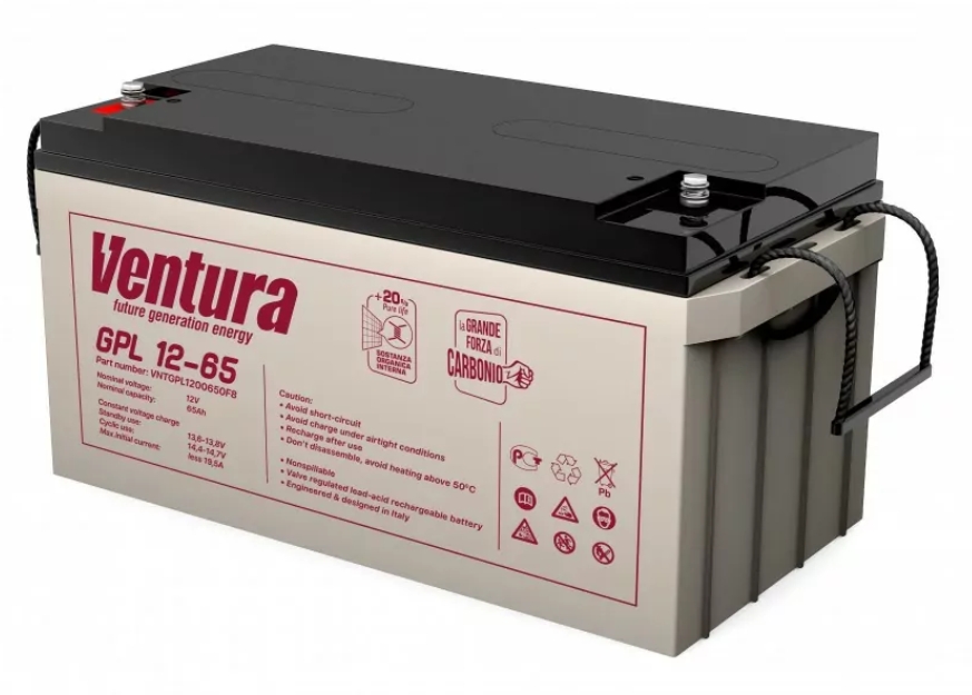 Аккумулятор Ventura GPL 12-65 - универсальная батарея с увеличенным сроком службы до 12 лет. Это достигается не только применением толстых намазных пластин, но и использованием специальных легирующих добавок, повышающих коррозионную стойкость пластин и исключающих их деформирование. Кроме того, стекловолоконный сепаратор АКБ изготовлен из боросиликатного стекла, что обеспечивает повышенную пористость сепаратора, а также его высокую устойчивость к воздействию высоких температур и серной кислоты. Аккумулятор предназначен для эксплуатации как в режиме постоянного подзаряда, так и в циклическом режиме.